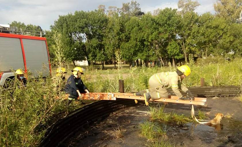 Sociedad | Un cachorro que cayó en un pozo de brea y no podía salir por sus medios fue rescatado por los Bomberos Voluntarios que trabajaron para en equipo para salvar la vida del animal.