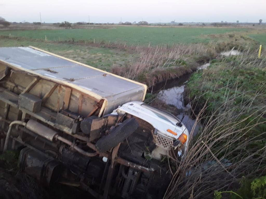 El equino cayó en el camino de un camión (de Urdinarrain), que circulaba también en sentido Sur-Norte, cuyo conductor no pudo evitarlo, lo impacta y termina despistando y volcando.